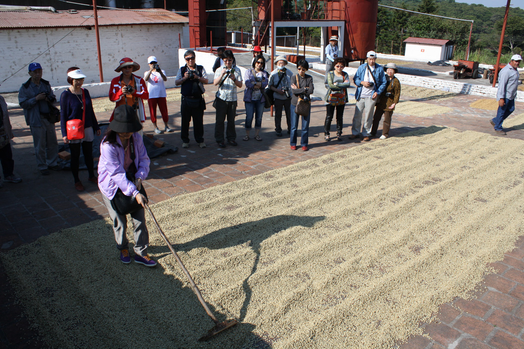 Drying coffee beans at el Patio.